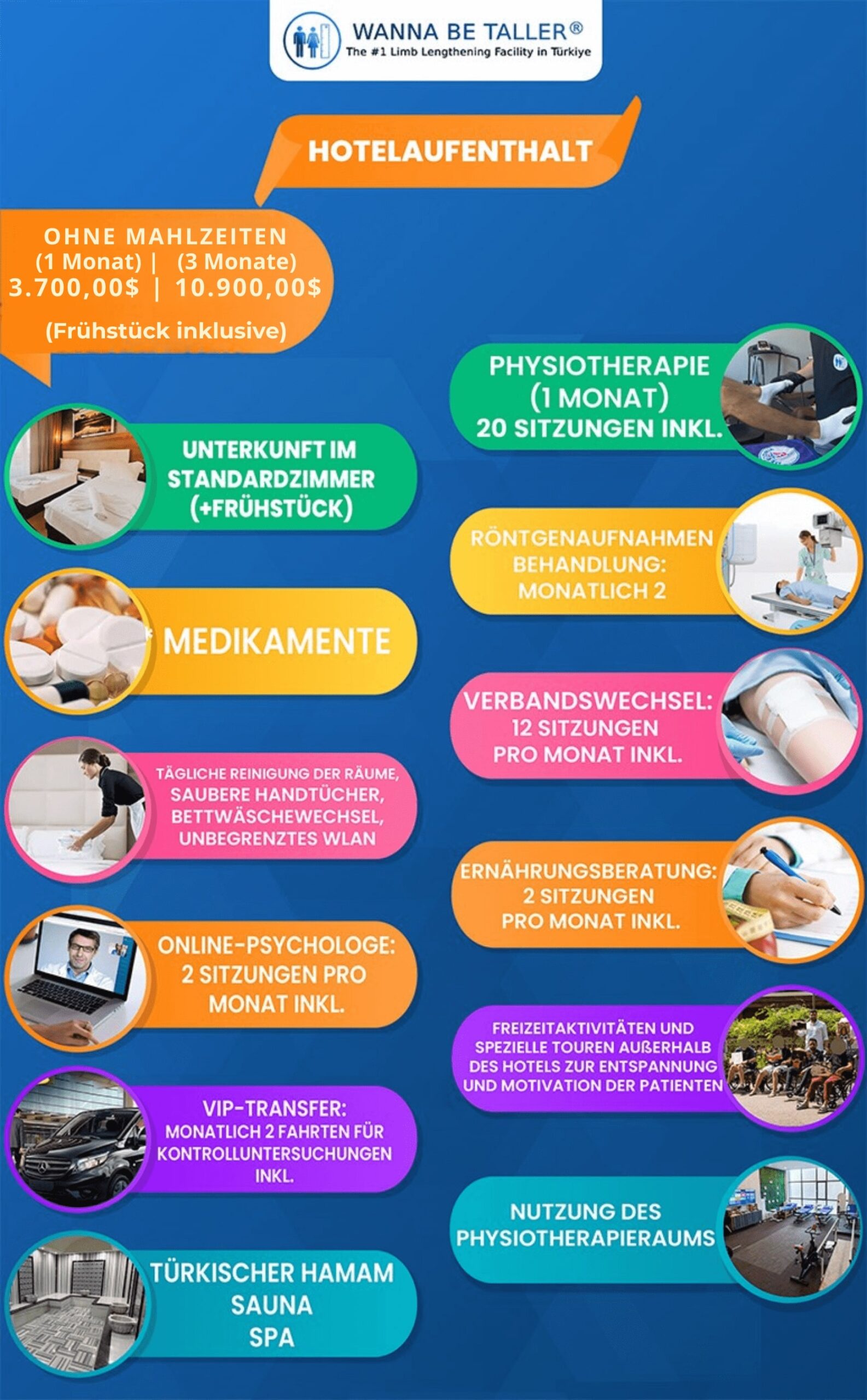 | Ilizarov | ca. 600 000 ₺ | Basis-Paket; geringste Kosten (Quelle: travelmedi.com) |