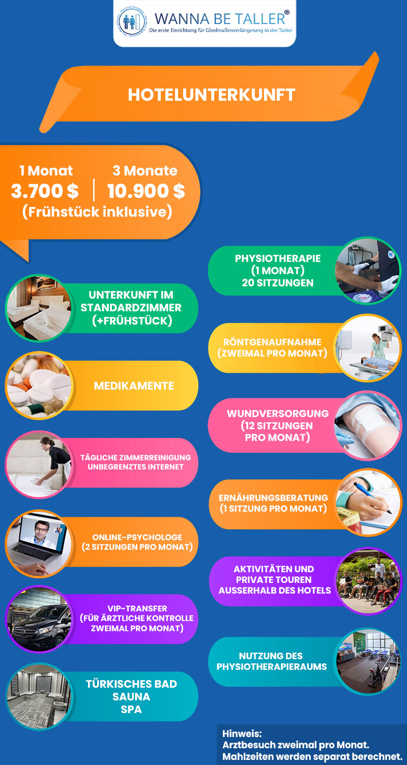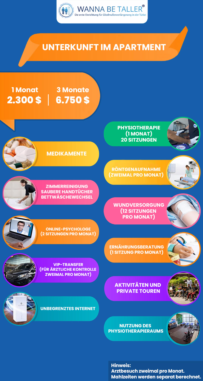 Sie können uns per E-Mail, WhatsApp, Facebook, Instagram, Telegram und Viber kontaktieren, um eine KOSTENLOSE Beratung und detaillierte Informationen über die Methoden zur Beinverlängerung sowie über prä- und postoperative Verfahren und Dienstleistungen zu erhalten.